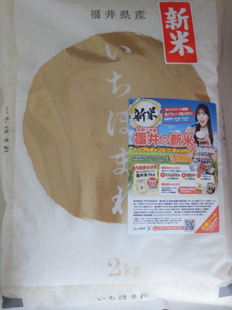 今までも書いておりますが、普段はほぼ1日を通して「ご飯」は食べないのですが、この秋は何故か「ご飯」に・・・で、コシヒカリを始まりに新潟産や茨木産、そして今回は「腹囲」でなく「福井県産」のお米を買ってきて、週に2回はご飯を頂いております!